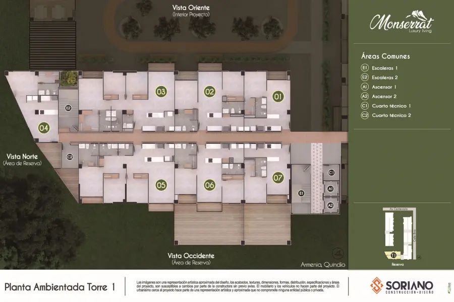 Monserrat Luxury Living es un proyecto residencial inspirado en el concepto de una burbuja de naturaleza, una visión arquitectónica que pone a la naturaleza en el centro de la experiencia de vivir. Con un diseño industrial contemporáneo, este desarrollo se ubica en una de las zonas de mayor valorización de Armenia, Quindío, en la dirección CLL 7 #9-42, rodeado de centros comerciales, restaurantes y servicios esenciales.