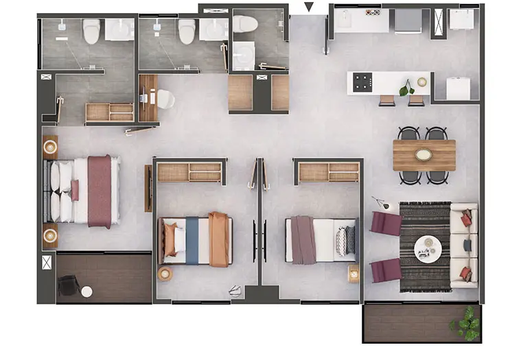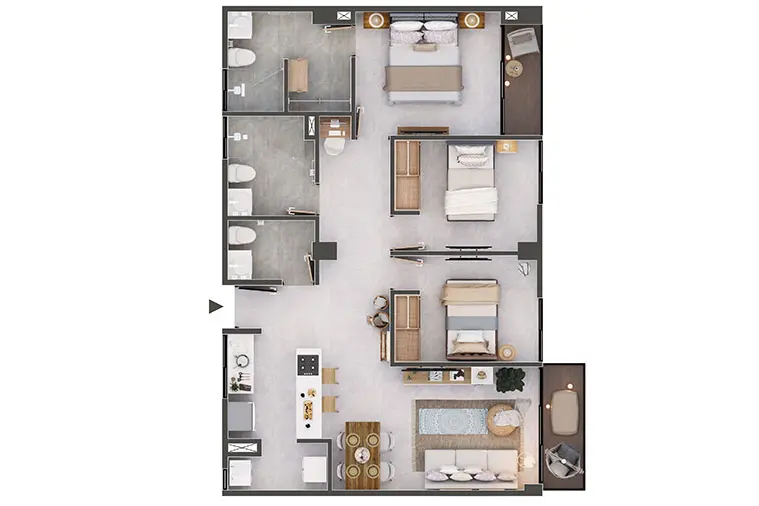 El proyecto contempla la construcción de 6 torres de apartamentos, cada una de 5 pisos, con una oferta diversa de 7 a 9 tipos de apartamentos por torre. Disponibles en configuraciones de 1, 2 y 3 habitaciones, incluyendo modernos dúplex, para un total de 216 apartamentos completamente terminados, listos para habitar.