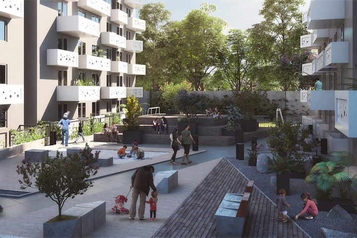 Está conformado por dos torres de 15 pisos cada una (Torre A y Torre B), con 8 tipos de apartamentos en diferentes configuraciones de 1, 2 y 3 habitaciones, con áreas que van desde 32 m² hasta 56 m². En total, el proyecto integra 256 apartamentos terminados, diseñados para maximizar funcionalidad y confort.