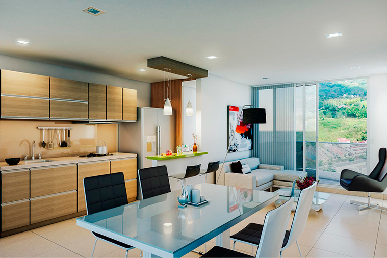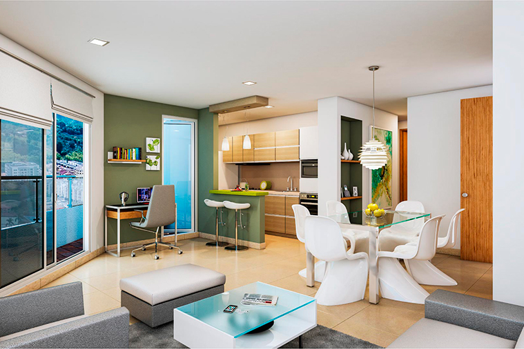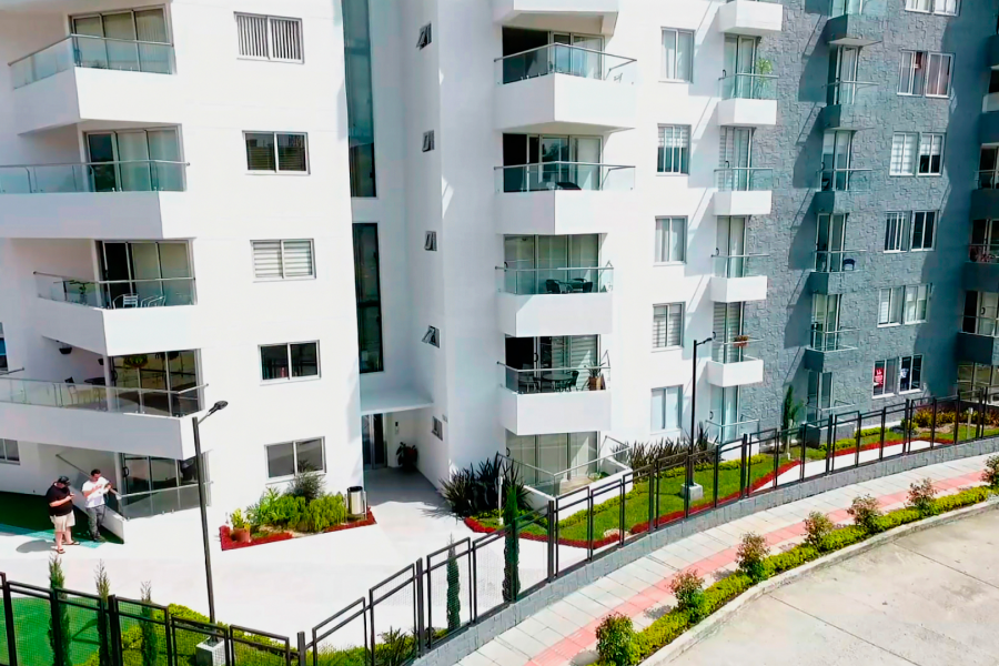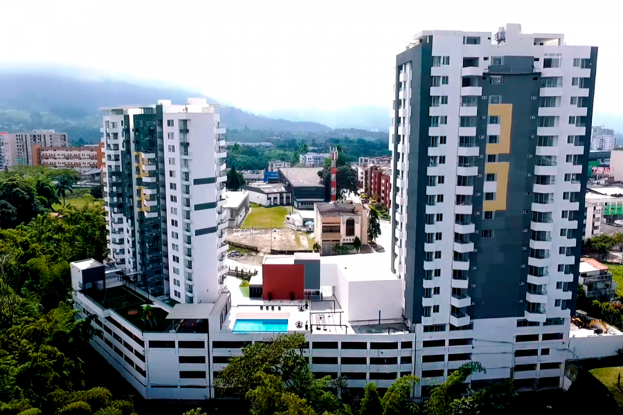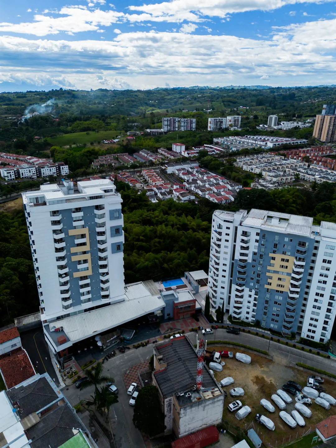 Este desarrollo se distingue por sus 1.900 m² de zonas comunes, pensadas para el bienestar y la convivencia de sus residentes: salón de eventos, gimnasio dotado, oficina de administración, zona social, piscina, turco, parque infantil, cancha sintética de fútbol 5, amplios senderos, mirador hacia zona de reserva ambiental, planta eléctrica y UTB. Además, integra 10 locales comerciales, 10 locales para consultorios u oficinas, un boulevard para la zona de locales, ascensores y 80 parqueaderos públicos.